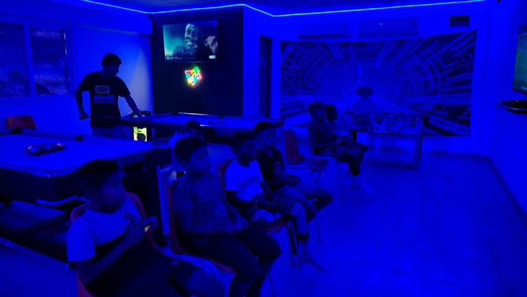 Nuestra zona de esparcimiento está diseñada como un punto de encuentro social que fomenta el compañerismo y el respeto. A través de dinámicas de billar, juegos de mesa y videojuegos, los jóvenes practican el pensamiento estratégico y la resolución pacífica de conflictos en un ambiente relajado, fortaleciendo los lazos comunitarios y el sentido de pertenencia.